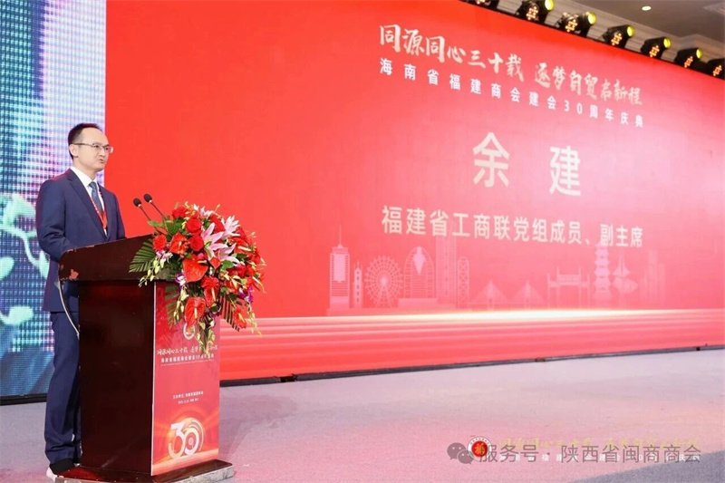 海南省工商联主席丁飞、福建省工商联副主席余建出席活动并致辞。丁飞表示,海南省福建商会成立30年来,会员企业在建筑建材、水产养殖、商贸服务、高科技等多个领域用实干为海南经济社会发展注入强劲的动力。当前,海南自贸港已启动全岛封关,希望广大民营企业家乘势而为,坚定扎根海南、投资海南、建设海南,主动把企业发展规划与自贸港建设大局同频共振,不断增强企业核心竞争力;余建表示,海南省福建商会已成长为会员队伍庞大的异地重要区域商会,有力促进了闽琼产业协作、资源互补、市场共享,为海南经济高质量发展贡献了闽商智慧力量。当下海南自贸港迎来封关运作千载难逢的发展机遇,希望海南省福建商会引领会员学好用好政策,帮助企业找到适配的新赛道,找准各自掘金的新风口,以新理念、新技术、新产品、新服务、新模式,拓展商业宽度,重塑行业高度。