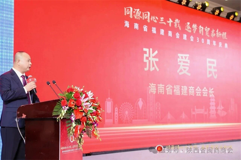 庆典在庄严肃穆的国歌声中拉开帷幕。海南省福建商会会长张爱民在致辞中深情回顾了商会自1995年成立以来的发展历程。三十年来,商会从最初的28家发起单位发展到如今拥有4200余家会员企业,投资海南累计超3000亿元,为海南经济社会发展作出了积极贡献。2002年时任福建省省长的习近平同志曾亲致贺信,勉励在琼闽商为闽琼两省经济发展贡献力量,这成为商会一路前行的重要精神动力。商会荣获5A级社会组织、全国“四好”商会等多项荣誉,成为连接闽琼两省经贸文化合作的“超级联系人”。